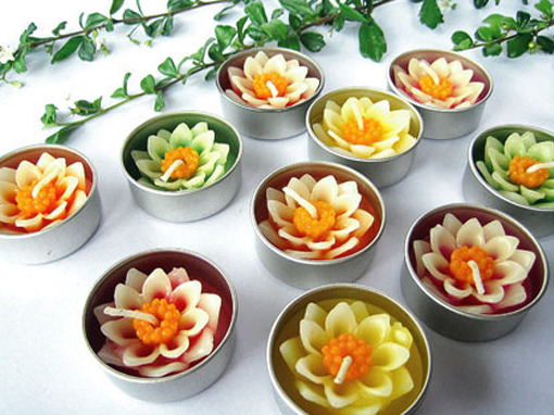 WC-L11 เทียนหอมทีไลท์ดอกบัว เทียนหอมดอกไม้ในถ้วยทีไลท์ tealight อลูมิเนียม ใช้จุดในเตาน้ำมันหอม จุดเพื่อสร้างบรรยากาศหรือวางประดับตกแต่งบ้าน มีกลิ่นหอมอ่อนๆ สามารถจุดได้นานและเคลื่อนย้ายง่ายนิยมใช้แจกเป็นของขวัญหรือของชำร่วย เหมาะสำหรับซื้อไปใช้เองหรือนำไปขายต่อเพื่อสร้างรายได้ เป็นที่นิยมของนักท่องเที่ยวต่างชาติ