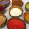 WC-O03 เทียนหอมในกะลามะพร้าว ใช้ลอยน้ำแทนกระทงหรือใช้จุดเพื่อสร้างบรรยากาศหรือวางประดับตกแต่งบ้าน มีกลิ่นหอมดอกไม้อ่อนๆ นิยมใช้แจกเป็นของขวัญหรือของชำร่วย เหมาะสำหรับซื้อไปใช้เองหรือนำไปขายต่อเพื่อสร้างรายได้ เป็นที่นิยมของนักท่องเที่ยวต่างชาติ