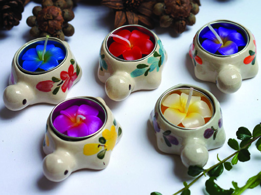 WP-I103 เทียนทีไลท์ในเซรามิคช้าง เมื่อจุดจนหมดสามารถเปลี่ยนเทียนได้ ใช้จุดเพื่อสร้างบรรยากาศหรือวางประดับตกแต่งบ้าน มีกลิ่นหอมดอกไม้อ่อนๆ นิยมใช้แจกเป็นของขวัญหรือของชำร่วย เหมาะสำหรับซื้อไปใช้เองหรือนำไปขายต่อเพื่อสร้างรายได้ เป็นที่นิยมของนักท่องเที่ยวต่างชาติ